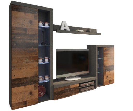 Nowoczesna meblościanka RUMBA wykonana z dobrej jakości płyty laminowanej w modnej kolorystyce, meble eleganckie i praktyczne.