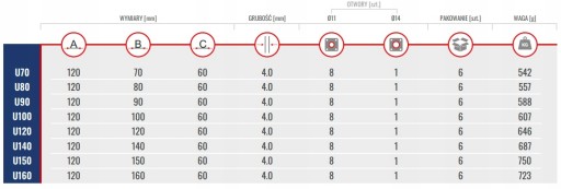 PODSTAWA SŁUPA PRZYKRĘCANA TYPU U 160x120x60mm 6 SZTUK