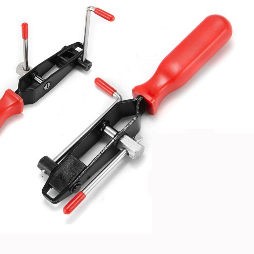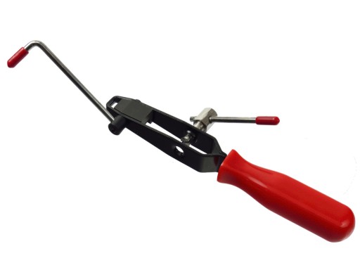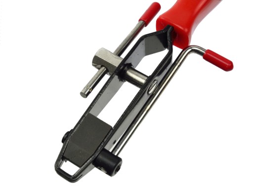 Szczypce z zastosowaniem do zaciskania i cięcia taśmowych opasek bez końcowych na przegubach napędowych oraz przewodach elastycznych.