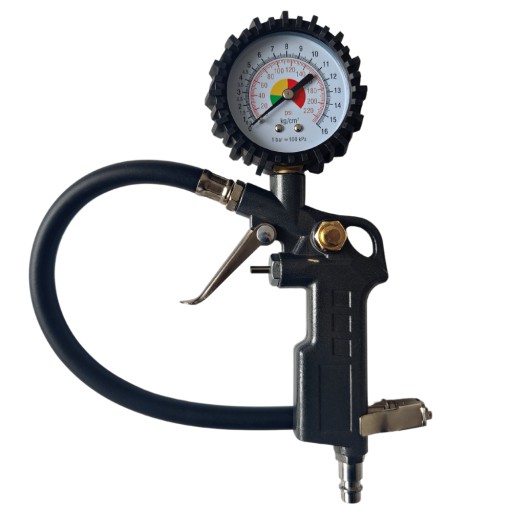 Niniejsza aukcja przedstawia pistolet do pompowania kół z manometrem o zakresie 16 bar. Niezbędne urządzenie w każdym serwisie ogumienia. Pistolet charakteryzuje się solidną konstrukcją oraz został wyposażony w zawór spustowy powietrza, a manometr posiada gumową obudowę zegara.