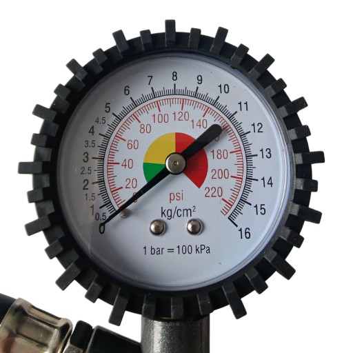 Posiada duży, czytelny manometr, zabezpieczony gumową osłoną.