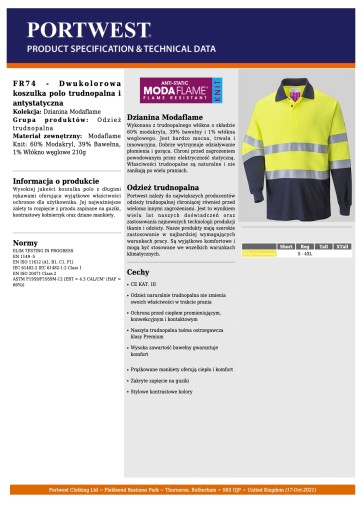 KOSZULKA ODBLASKOWA TRUDNOPALNA FR74 PORTWEST
