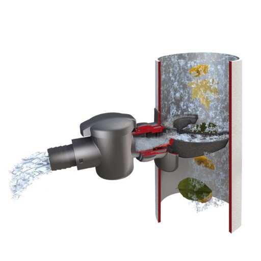 Zawarte w zestawie zbieracz wody SPEEDYsitko filtrujące zapobiega magazynowaniu zanieczyszczeń stałych w zbiornikach na deszczówkę, co przeciwdziała akumulacji biomasy i pojawianiu się glonów w zbiorniku. Dodatkowo obecny jest jest specjalny zawór zamykający. Dzięki temu nie ma obawy, że zabrudzenia trafią do zbiornika magazynującego.