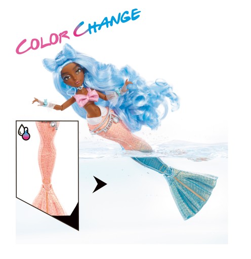 • ZMIENIAJĄCY KOLOR OGON: Każda lalka Mermaze Mermaidz ma wyjątkowy, wyrzeźbiony ogon, który po zanurzeniu w zimnej wodzie spektakularnie zmienia kolor. Zobacz, jak jego odcień przechodzi z koralowego w turkusowy.