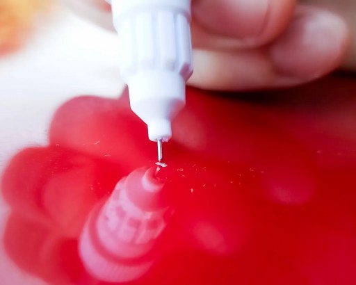 - Delikatnie przeciągnij igiełką przez miejsce gdzie znajduje się uszkodzenie lakieru
