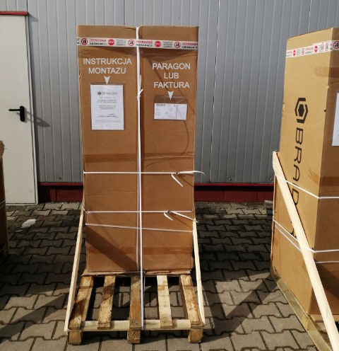 Na kartonie umieszczana jest prócz listu przewozowego również koszulka z dokumentem sprzedaży oraz koszulka z instrukcją montażu wanny.