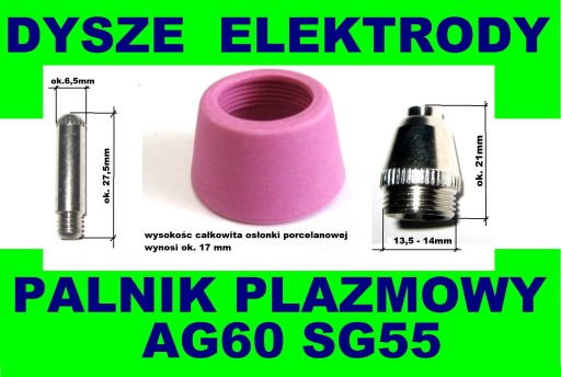 Są to elementy eksploatacyjne do palników przecinarek plazmowych: BERKERS, POWERMAT, GEKO, INTER CUTTING, w modelach: C60, CUT40, CUT50, CUT60, CUT70, CUT80 i wielu innych (więcej modeli i wymiary dysz i elektrod, w opisie poniżej).