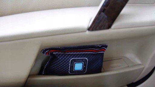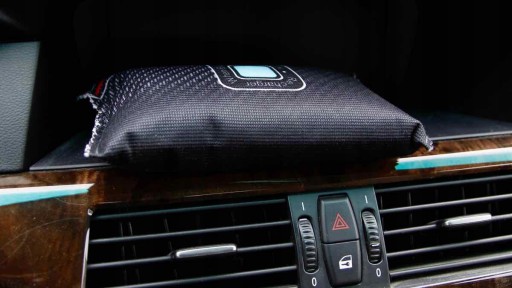 Pochłaniacz obszyty jest miękkim materiałem, dzięki czemu nie porysujemy wnętrza samochodu.