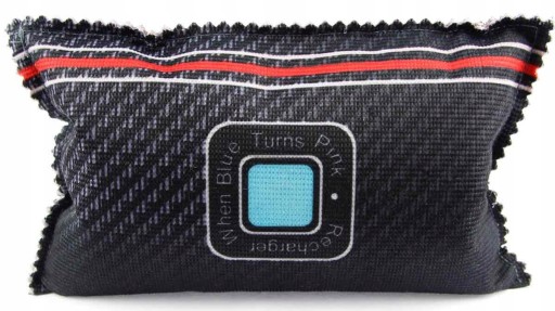 Niebieski symbol umieszczony na pochłaniaczu zmieniając kolor na różowy poinformuje nas o tym, że wchłonął już maksymalną ilość wilgoci.