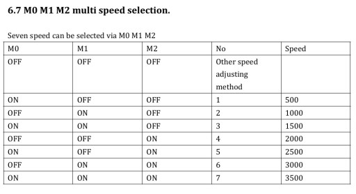 - multi-speed - funkcja dająca nam bezpośredni dostęp do 7 predefiniowanych prędkości np: 500 - 1000 -......-3500rpm