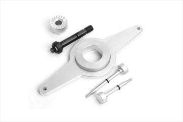 Biorąc pod uwagę, że na kole zębatym łańcucha nie ma rowka wpustowego, po usunięciu centralnej śruby i obróceniu silnika pozycja rozrządu wałka rozrządu zostanie utracona. Ten specjalistyczny zestaw zawiera niezbędne narzędzia potrzebne do utrzymania tymczasowej pozycji, gdy naprawa wymaga usunięcia tłumika drgań