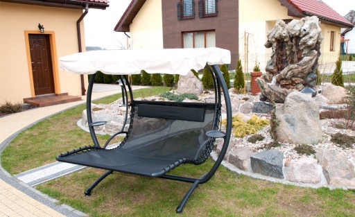 Nowoczesny stylowy design stawia nasze produkty na pierwszym miejscu wśród hamaków - leżanek pod względem komfortu oraz użyteczności produktów ogrodowych. Konstrukcja dwuosobowej leżanki wykonana jest z mocnych grubych stalowych rur co wpływa na bardzo dużą stabilność. Całość malowana proszkowo co gwarantuje odporność na warunki atmosferyczne przez wiele lat. Pokrycie leżanka wykonane jest z polietylenowego tworzywa które jest bardzo trwałe oraz przyjemne w dotyku. Aby zwiększyć komfort wypoczynku nasz produkt wyposażony jest w daszek chroniący użytkownika przed promieniami słonecznymi jak również przed niespodziewanym deszczem