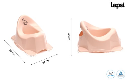 Gumowe nóżki zapobiegają przesuwaniu się nocnika. Produkt jest bezpieczny i stabilny. Idealnie nadaje się do wygodnej i bezpiecznej nauki toalety.