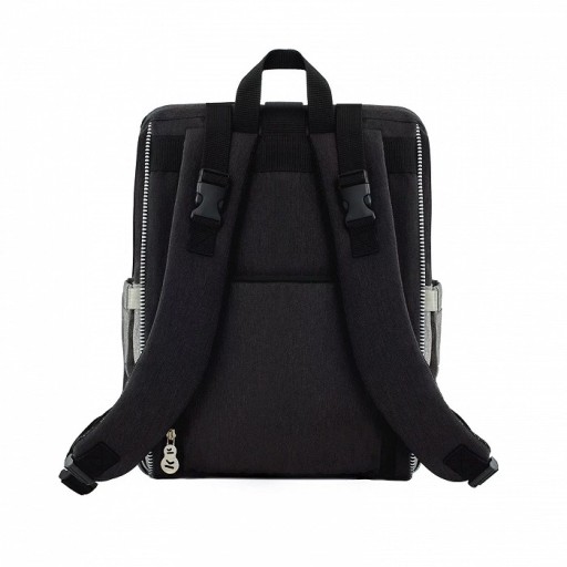 W przedniej kieszonce znajduje się także miejsce na mokre ubrania i zużyte pieluszki. Materiał jest pokryty specjalną powłoką, która chroni plecak przed zamoknięciem od wewnątrz.