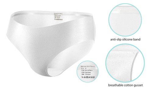 W górnej części majtek silikonowa wstążka utrzymuje bieliznę na miejscu.