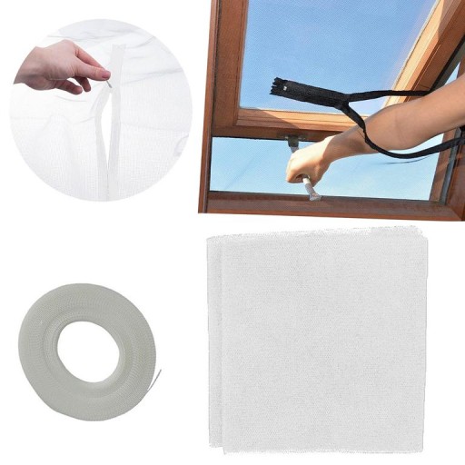 - DACHOWA - Siatka na okno dachowe wraz z taśmą potrzebną do montażu. Moskitiera ma wymiary 140 x 120 cm i jest w kolorze białym.