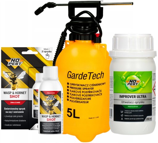 Skuteczny zestaw do zwalczania os i szerszeni No Pest! Oprysk Wasp&Hornet Shot + Utrwalacz oprysku 250ml + Opryskiwacz GardeTech 5l!