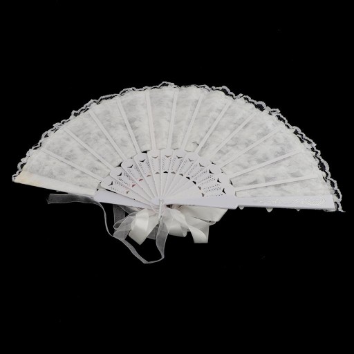Satin Lace Flower Faux Pearl Folding Fan Wedding Party Prom Photo Props