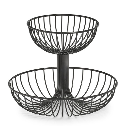 Kosz na owoce 2-poziomowy, Ø 32 x 26 cm, czarny, ZELLER. Przechowywanie żywności w domu bywa niełatwe. W trosce o to, by produkty spożywcze nie psuły się, warto zadbać o odpowiednie przechowywanie, szczególnie świeżych warzyw i owoców. W naszym sklepie znajdziesz bogaty wybór praktycznych rozwiązań, które pozwalają zachować świeżość owoców czy warzyw, a także pomagają wyeksponować je, tworząc piękną dekorację w kuchni czy jadalni.