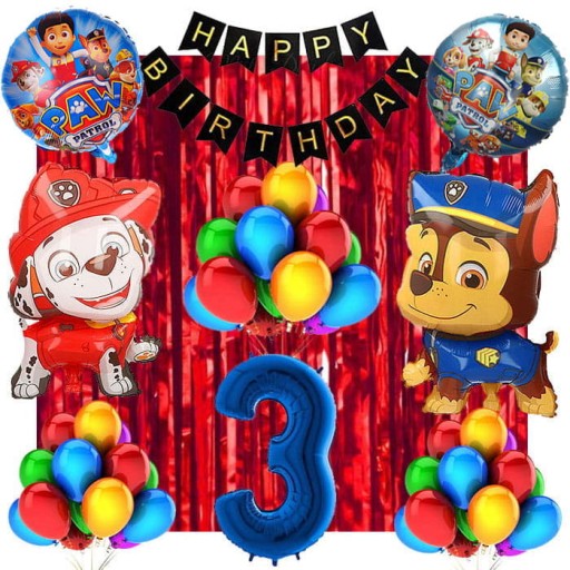 ZESTAW BALONÓW Z KURTYNĄ NA 3 URODZINY PSI PATROL - ŚCIANKA DEKORACYJNA, ZESTAW DEKORACJI
