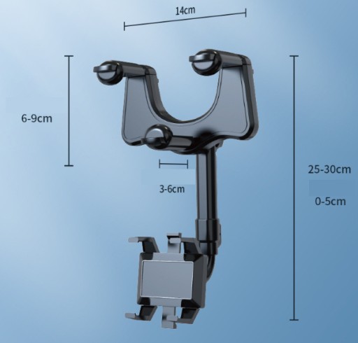 Zarówno element mocujący do telefonu jak i do lusterka jest płynnie regulowany, co zapewnia uchwytowi dużą uniwersalność. Obraca się o 360° !