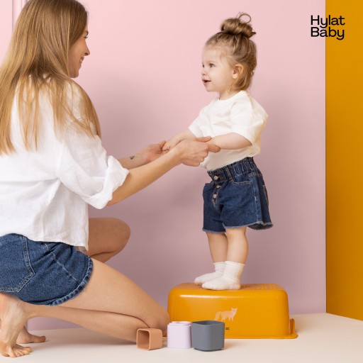 - HIGIENA - dziecko może za pomocą tego podnóżka dotrzeć do umywalki i nie musi być trzymane pod ramieniem lub na kolanach. Również podczas chodzenia do toalety ten podnóżek jest nieocenioną pomocą – dziecko może samodzielnie usiąść na desce toaletowej.