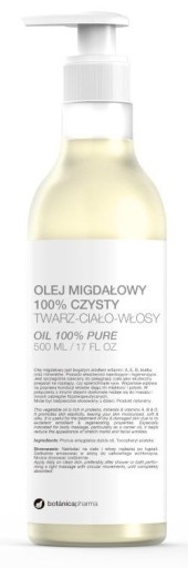 Botanicapharma Olej migdałowy czysty do twarzy, ciała i włosów pompka 500ml