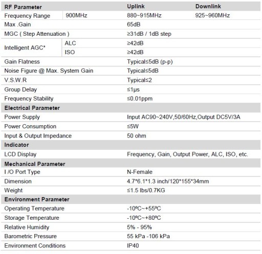 Urządzenie posiada wyświetlacz LCD z funkcją monitorowania stanu na żywo, co zapewnia bardzo łatwe użytkowanie. Dzięki inteligentnej funkcji AGC wzmacniacz automatycznie mierzy siłę sygnału wejściowego i dostosowuje najlepsze parametry systemu do warunków odbioru w danym obszarze. Automatyczna kontrola wzmocnienia ułatwia sterowanie mocą między nadajnikiem a wzmacniaczem, aby utrzymać zysk na optymalnym poziomie, ograniczyć szumy do zera i nie zakłócać innych pasm. * Pamiętaj, że powinieneś mieć co najmniej 2-3 kreski na odczycie sygnału poza domem, aby wzmacniacz zapewniał ogólne wzmocnienie sygnału. Zasięg urządzenia zależy również od grubości ścian i projektu budynku.