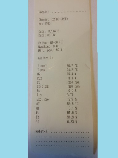 - Zestaw analizatora spalin SpalEko (CHEMIST 102S) z 2 sensorami O2(0-25%) CO H2 komp.(0-4000ppm) i miejscem na sensor NO