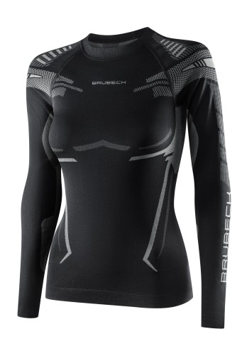 Bluza techniczna DRY, stworzona jest z dwuwarstwowej dzianiny o bezszwowej konstrukcji. Co to znaczy dla Ciebie? Warstwa przy ciele ma za zadanie sprawnie odprowadzić wilgoć na zewnątrz dzianiny. Warstwa zewnętrzna chroni przed przenikaniem chłodnego powietrza i utrzymaniem komfortu cieplnego zapewniając odpowiednią wentylację. Damska koszulka termoaktywna wykonana jest w technologii bezszwowej, która zapobiega powstawaniu otarć i podrażnień w trakcie aktywności. Dzięki specjalnym strefom RIB, termoaktywna bielizna zawsze pozostanie w odpowiedniej pozycji. Bluza powinna przylegać do ciała niczym druga skóra, w ten sposób zachowamy wysoką efektywność odzieży termoaktywnej, jednocześnie nie krępując naszych ruchów.