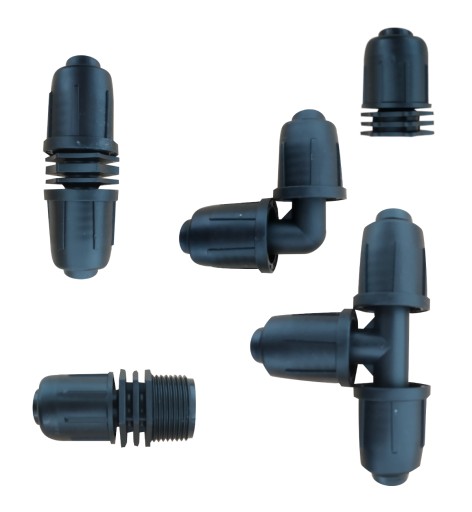 - Zestaw złączek skręcanych umożliwia pewne podłączanie linii kroplującej, bez obaw o przeciekanie.