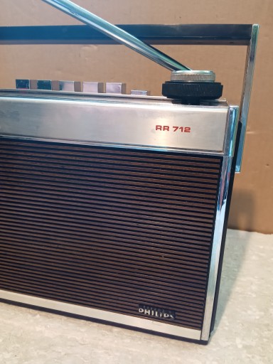 Do sprzedaży stary przenośny radiomagnetofon : PHILIPS RR 712 . Nie odtwarza kasety i nie przewija . Radio odbiera bardzo dobrze a Głośnik gra czysto i wyraźnie. Brakuje końcówki antenowej ! Jeden boczek jest odklejony . Wymiary : 20 cm x 32 cm x 10 cm . Waga:3Kg . Kabelek do zasilania w komplecie . Sprzedaż bez zwrotu .