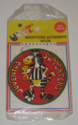 Nylonowy emblemat - retro - w barwach Juventusu. Wg opisu z opakowania jest samoprzylepny - może służyć jako łatka do naprawy wiatrówek, parasoli, śpiworów, toreb, kombinezonów narciarskich, itd. Prawdopodobnie nadaje się do użycia tylko na śliskie powierzchnie. Wymiary: średnica 7 cm. Nowy. Stan jak na zdjęciu. Z Włoch. Cena za 1 szt.