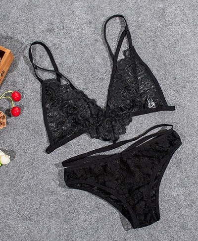 Prześwitujący komplet bielizny damskiej z seksowną koronką. Zestaw zawiera miękki stanik. Do kompletu dołączono także pasujące figi. Zestaw ponętnie akcentuje kobiece ciało, dzięki czemu jest doskonałym elementem gry wstępnej.