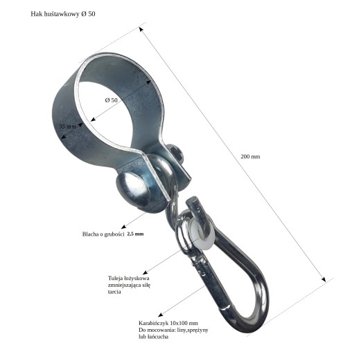 Obejma do mocowania huśtawki z karabińczykiem 50 mm