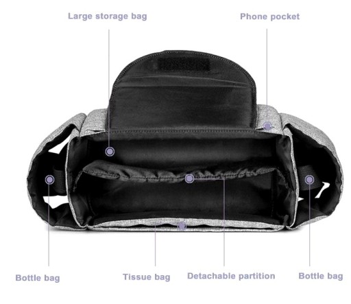 Uniwersalny i praktyczny organizer do wózka, idealny podczas spacerów z dzieckiem, lekki i pakowny