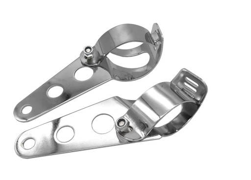 Uniwersalne metalowe uchwyty do zamocowania lamp, halogenów, owiewek. Doskonale nadają się do lamp z bocznym mocowaniem. Montaż odbywa się za pomocą obejmy skręcanej na śrubę.