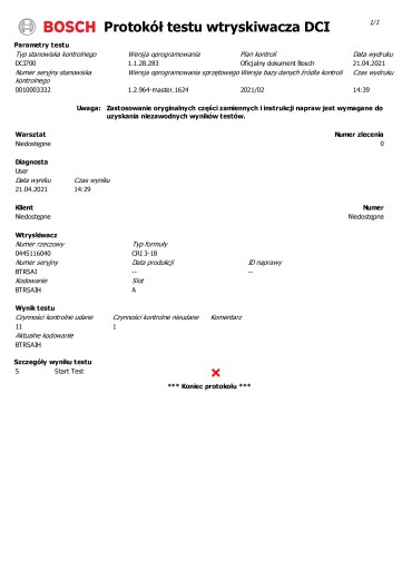 - wykonaniu testu porównawczego dawek wtryskowych i przelewów