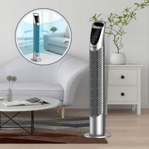 Dzięki oscylacji powietrza pod kątem 75°, wentylator obraca się względem swojej osi w obydwu kierunkach, chłodząc równomiernie całe pomieszczenie i wprowadzając powietrze w ruch. Można ją uruchomić poprzez wciśnięcie przycisku OSC na panelu bądź pilocie.