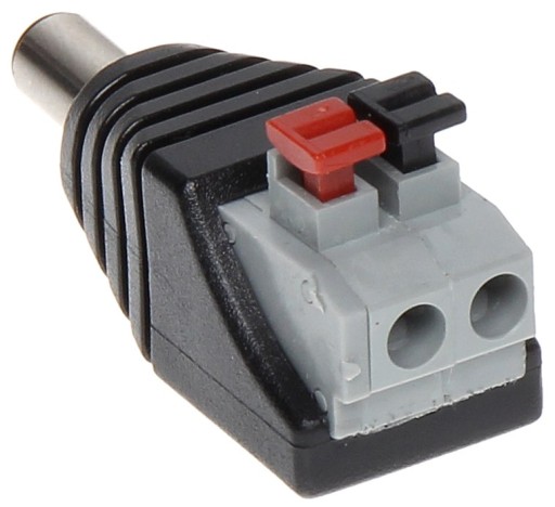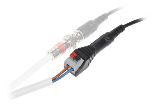 Szybkozłącze na standardowe gniazdo do zasilania kamery. Aby zamontować S-55H*P100 wystarczy jedynie odizolować przewody i wcisnąć w zaciski sprężynowe.