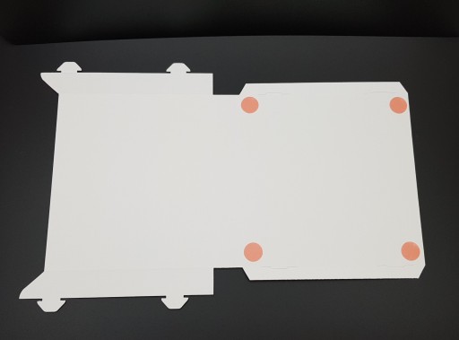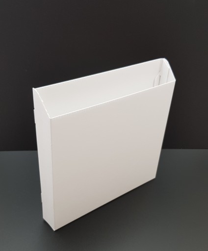 Materiał: biała tektura mikrofala fala E, 390g/m2, grubość 1,5mm (nadaje się do recyklingu).