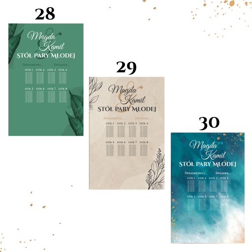- personalizacja projektu - indywidualne dopasowanie projektu pod liczbę stołów, wpisanie listy gości