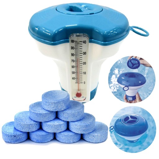 CHEMIA CHLOR TABLETKI DO BASENU 10w1 10x 20g + MOCNY DOZOWNIK Z TERMOMETREM