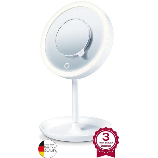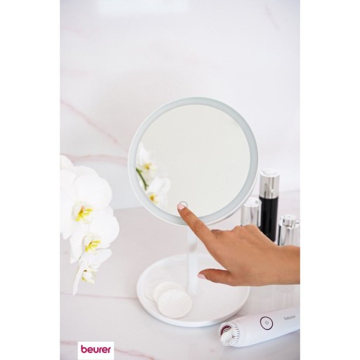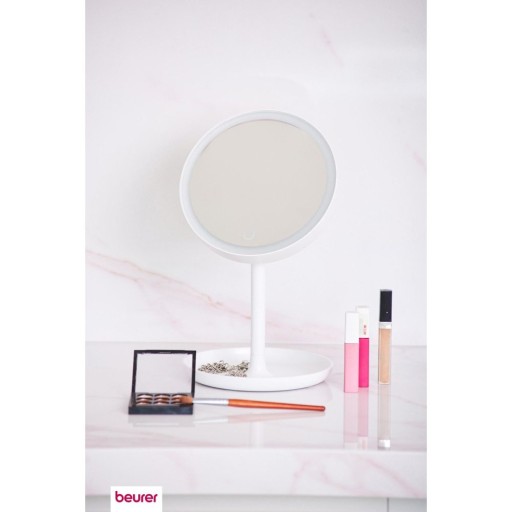 Podświetlane lusterko do makijażu marki BEURER idealnie sprawdzi się w Twojej łazience. Lusterko posiada bardzo dużą powierzchnię o średnicy 17,5 cm i dodatkowe lusterko magnetyczne do 5-krotnego powiększenia. Wymiary: 20 x 19 x 33,7 cm.