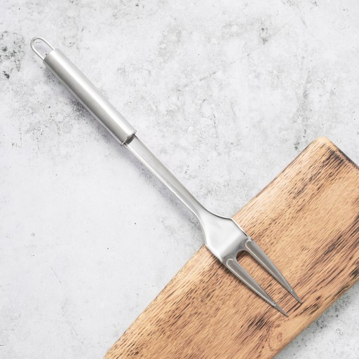 Widelec do mięsa z kolekcji Ivy to artykuł przydatny w każdej kuchni. Jest on niezbędny do stabilnego krojenia przygotowanej pieczeni, a także przydatny podczas obracania mięsa na ruszcie lub patelni. Wykonany ze stali nierdzewnej widelec posiada uchwyt do zawieszenia. Wygodny w użyciu i praktyczny w każdej kuchni.