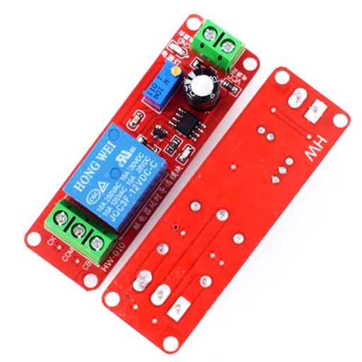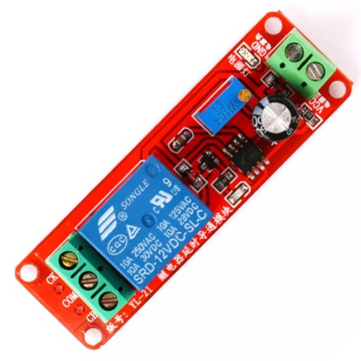 Zegar opóźniający pozwala na sterowanie układem w przedziale od 0 do 10 sekund. Po dostarczeniu zasilania 12V rozpoczyna on pomiar czasu, ustawionego za pomocą wbudowanego potencjometru, a gdy ten się skończy moduł włącza przekaźnik. Dzięki przemyślanej konstrukcji i dwóm diodom sygnalizacyjnym będziesz wiedział o aktualnym stanie pracy przekaźnika czy też modułu. Układ NE555 sprawdzi się na początku przygody z elektroniką jak i w zaawansowanych projektach.