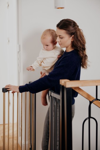 ✔️ Podwójna pewność- mechanizm uniemożliwia otwarcie bramki za pomocą jednego przycisku – potrzebny jest przycisk i jednoczesne uniesienie drzwi. Dzięki temu nie ma ryzyka, że sprytny maluszek sam otworzy sobie bramkę.