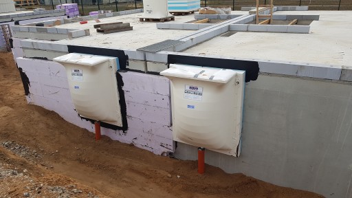 Na osobnej aukcji można dokupić przyłącze z syfonem lub bez syfonu (syfon widoczny u dołu doświetlacza na zdjęciu obok) oraz klej - uszczelniacz do łączenia doświetlacza z murem.