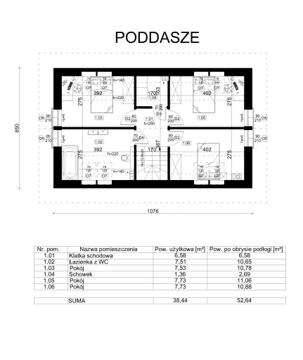 - Szerokość elewacji frontowej - 10,76 m