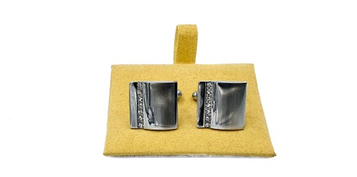 Efektowne spinki mankietowe do rękawów koszuli. Spinają wieloletnią tradycję oraz wyszukany styl w ponad czasowej obowiązkowej biżuterii męskiej. Srebrne wypełnienie głowicy. Srebrna głowica spinki w której na krawędzi osadzone są cyrkonie. Wykonana jest ze stali nierdzewnej pokrytej nieścieralną warstwą galwanizacyjną. Ten surowiec od lat jest materiałem dekoracyjnym stosowanym w męskiej biżuterii – fantastyczna gra ułożonego połączenia dwóch struktur górnej części spinki, przykuwa wzrok i podkreśla wyjątkowość całej konstrukcji tej stylizacji. Spinki do koszuli to idealny dodatek na wielkie uroczystości, np. ślub lub bankiet.